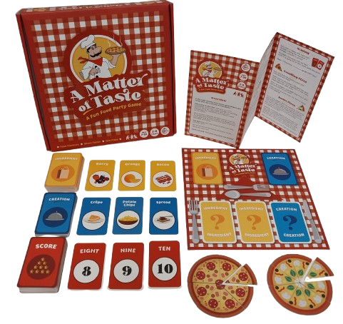 A Matter Of Taste is a light-hearted, highly social card/food game where players create and rate delicious (or not-so-delicious) dishes!